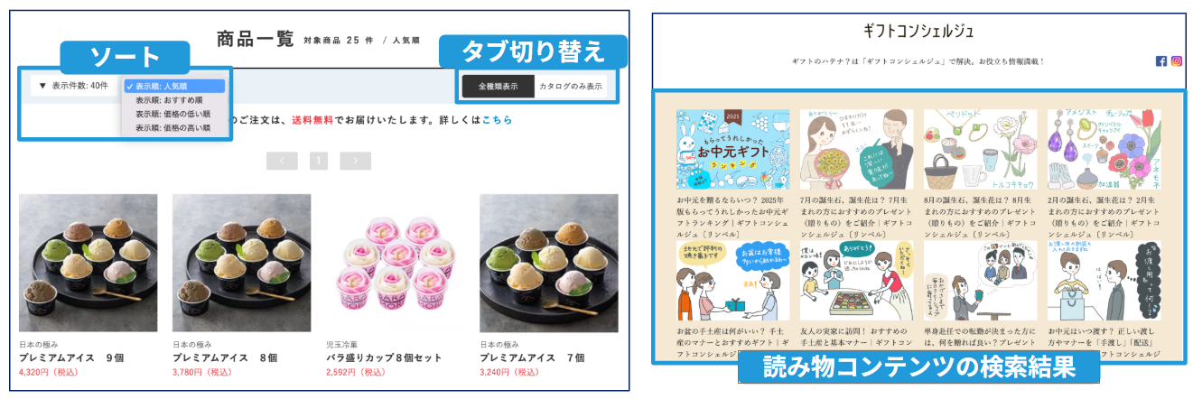 また、オウンドメディア「ギフトコンシェルジュ」でも検索導線を活用し、コンテンツ閲覧からギフト選定までのスムーズな動線設計を実現しました。